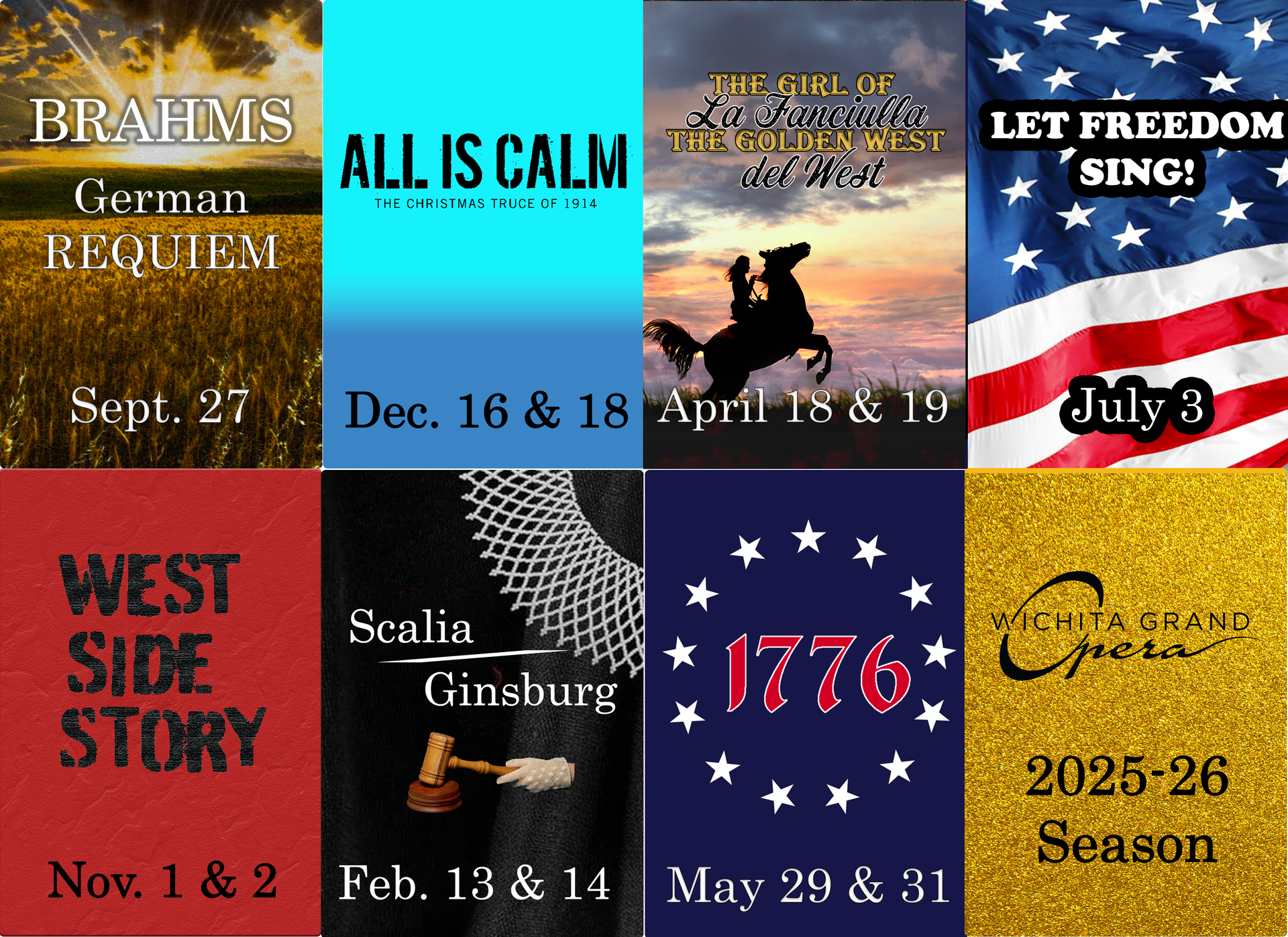 In collaboration with Wichita Riverfest, Wichita Grand Opera presents the Tony Award-winning musical 1776. This fully staged production brings to life the tensions, trials and triumphs leading to the birth of the United States of America. Rich in historical detail and featuring sharp dialogue, witty debate and music both lively & poignant, 1776 is a fitting celebration of democratic ideals and American resolve.